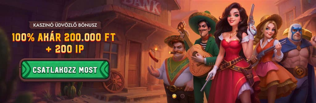 100%-os, üdvözlő bónusz, akár 200.000 Ft + 200 Ingyenes Pörgetés