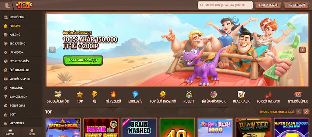 A Stonevegas Casino egy igazán kellemes meglepetés a magyar online kaszinók világában. Már első látásra feltűnik a letisztult, mégis kedves dizájn és az egyszerű navigáció, ami alapján gyorsan megtalálható minden, ami csak kell, legyen szó játékokról, bónuszokról vagy épp ügyfélszolgálatról.